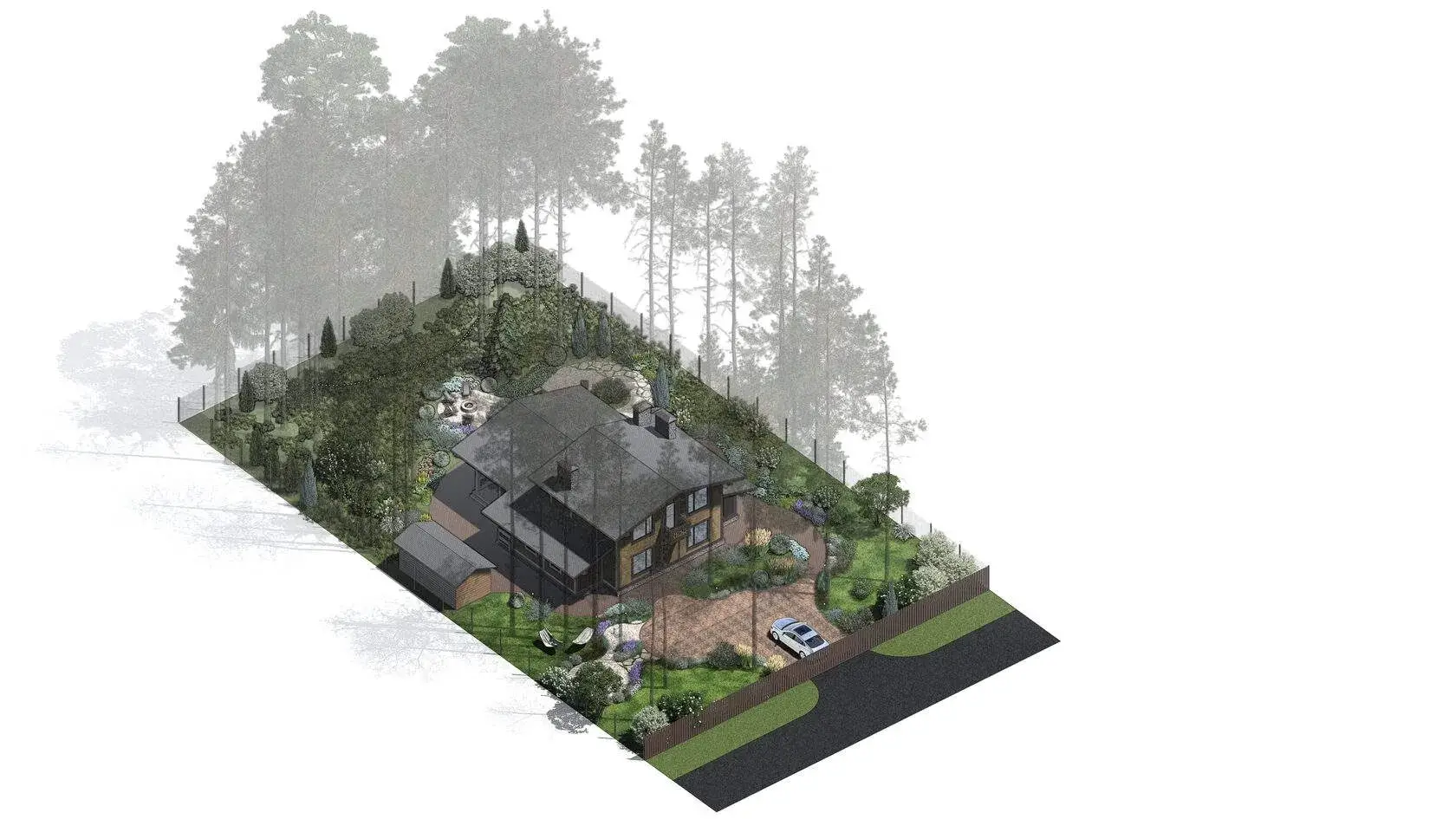 Дендроплан участка разработан с учетом сохранения лесной зоны и дополнительного озеленения. В посадках использованы местные виды растений, устойчивых к климатическим условиям региона. Акцент сделан на многоуровневом озеленении: деревья, кустарники и травянистые растения создают естественный и ухоженный вид участка.