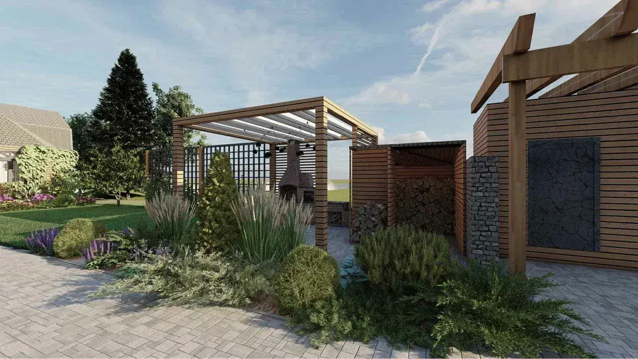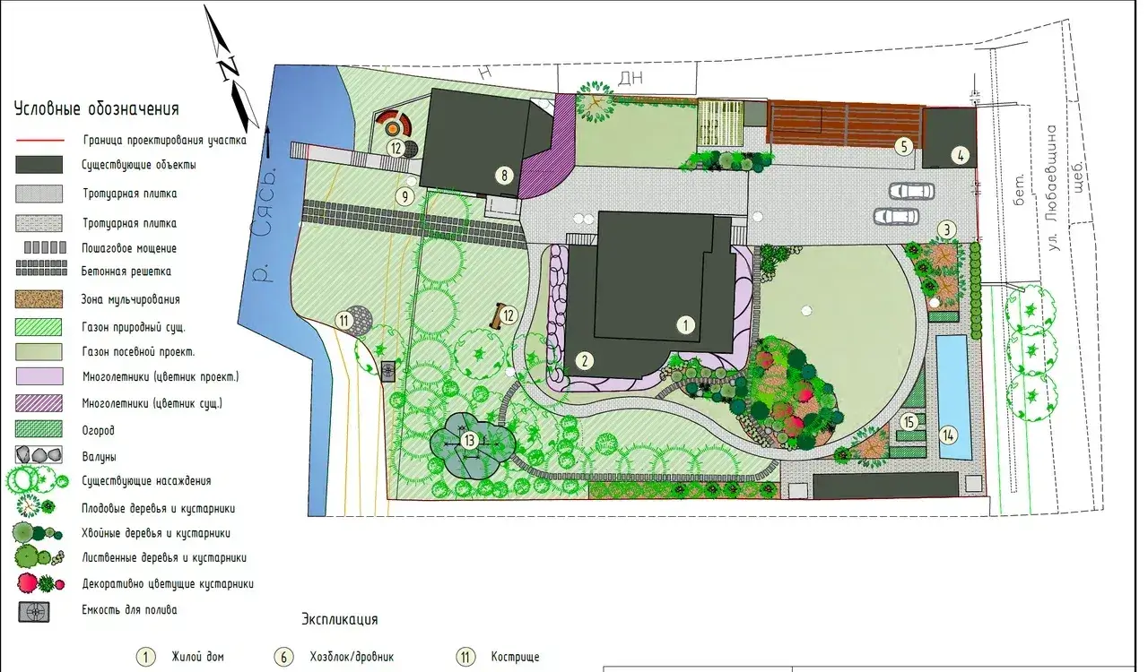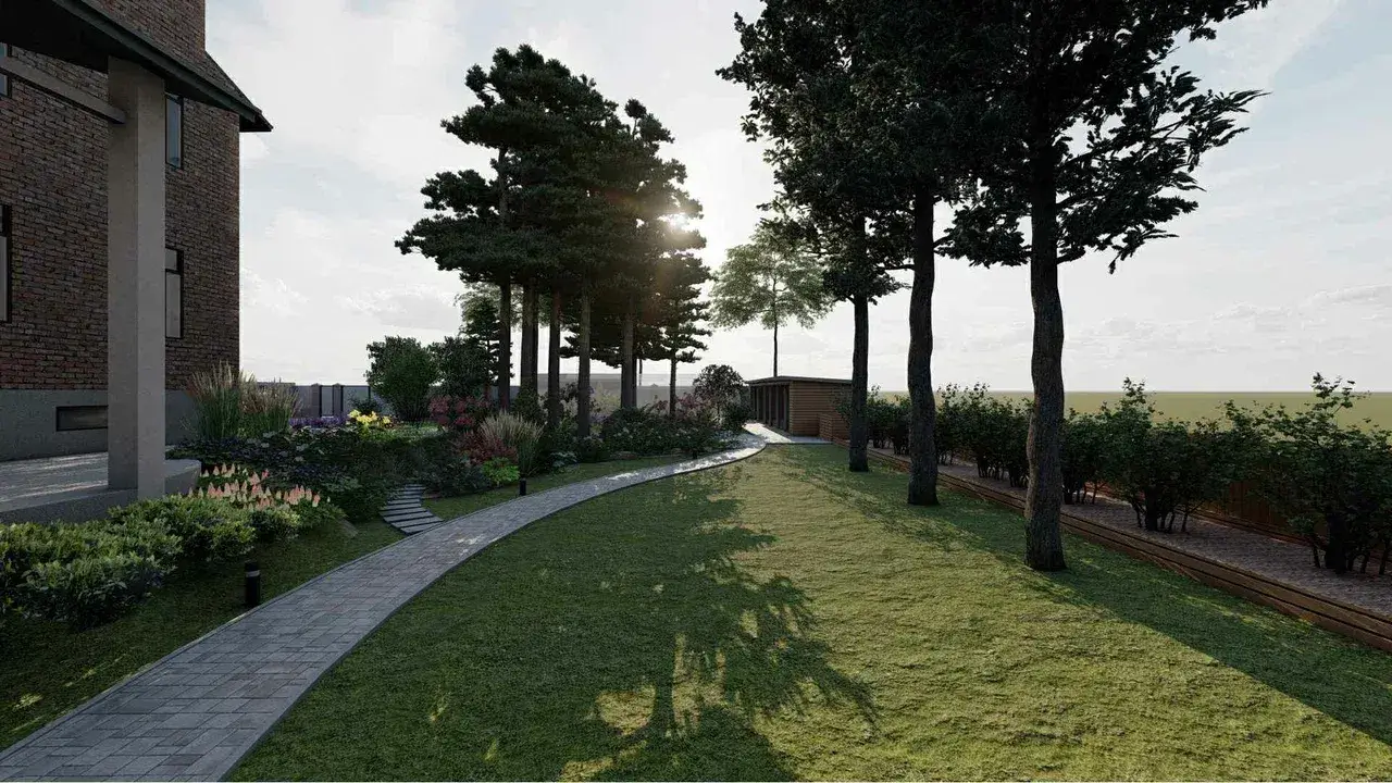 Участок с живописным рельефом и выходом к воде превращается в уникальное пространство, где природа и комфорт сливаются воедино. Существующие деревья становятся сердцем ландшафта, а перепады высот создают динамичный дизайн с удобными спусками к воде и местом для плавучего причала.